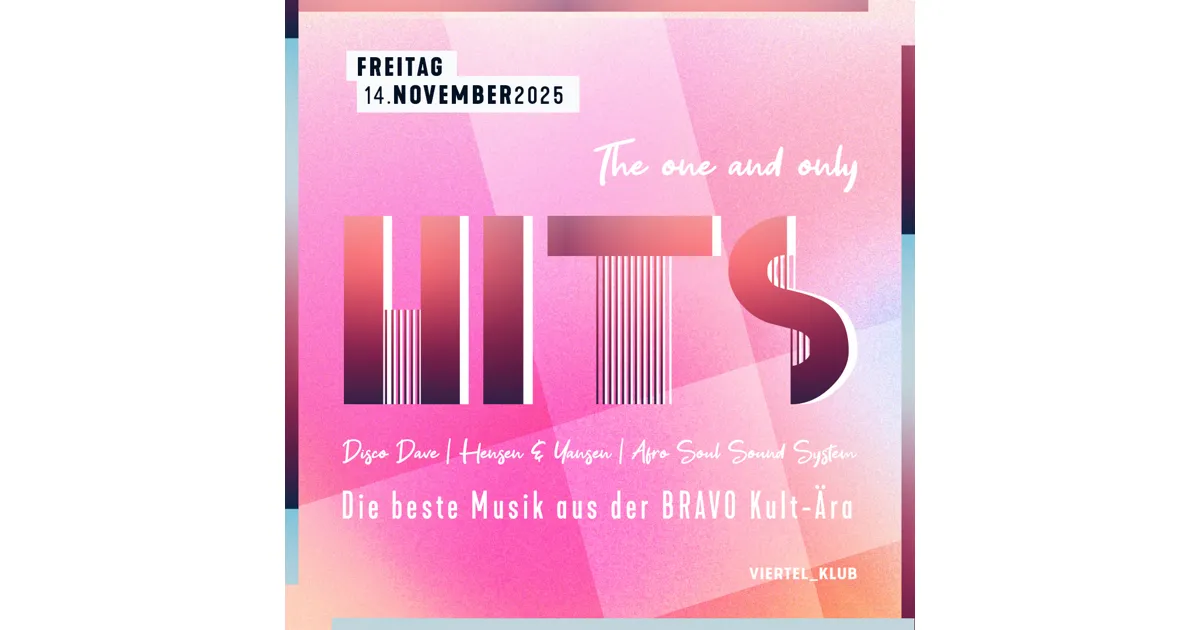 Mit der Novemberausgabe nimmt "HITS – the one and only!" wieder den gewohnten Platz im Programm des Viertel _Klub ein. Die beliebte Partyreihe gehört seit Eröffnung zum festen Bestandteil und erfreut sich ungebrochener Beliebtheit. Ganz nach dem Motto "Never change a winning...