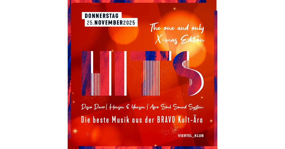 Am ersten Weihnachtstag feiert es sich bekanntlich ganz gut und gerne. Und was wäre passender als eine Feiertagsausgabe von "HITS - the one and only!" Der Event gehört seit Eröffnung monatlich zum fixen Inventar des Programms und erfreut sich nach wie vor grösster Beliebtheit. Und ganz...