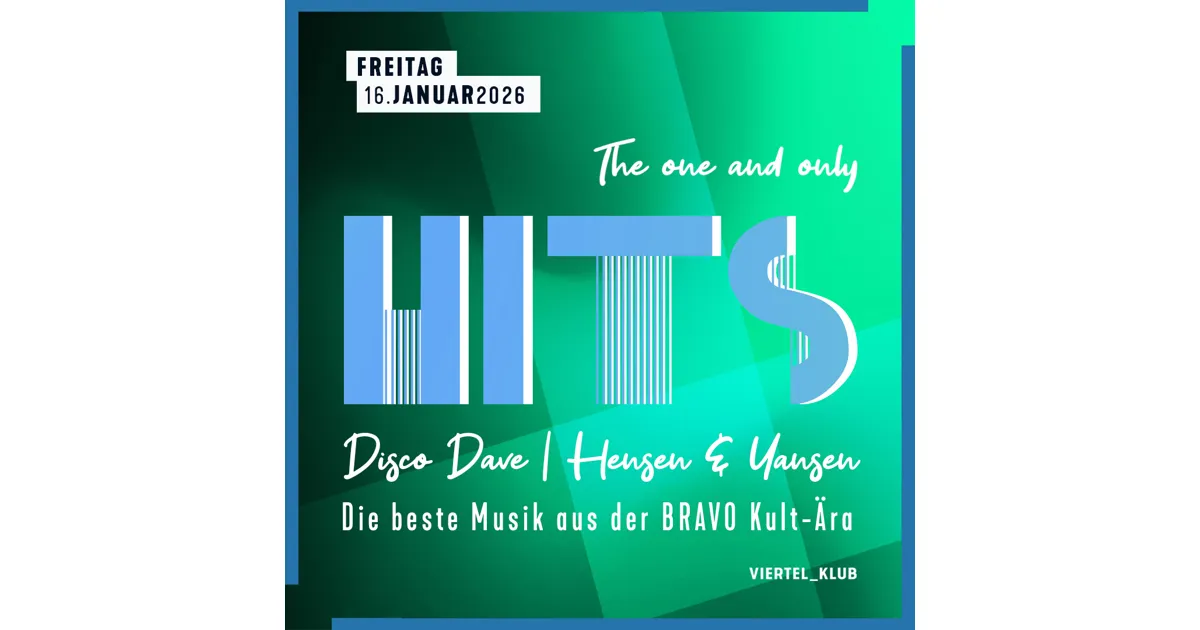 An Altbewährtem wird festgehalten! Seit der Eröffnung des Viertels unverwüstlich, gehört "Hits - the one and only!" auch 2026 monatlich zum fixen Inventar des Viertel _Klub Programms. Und ganz nach dem Motto "never change a winning team", sorgt im neuen Jahr wie gehabt das...