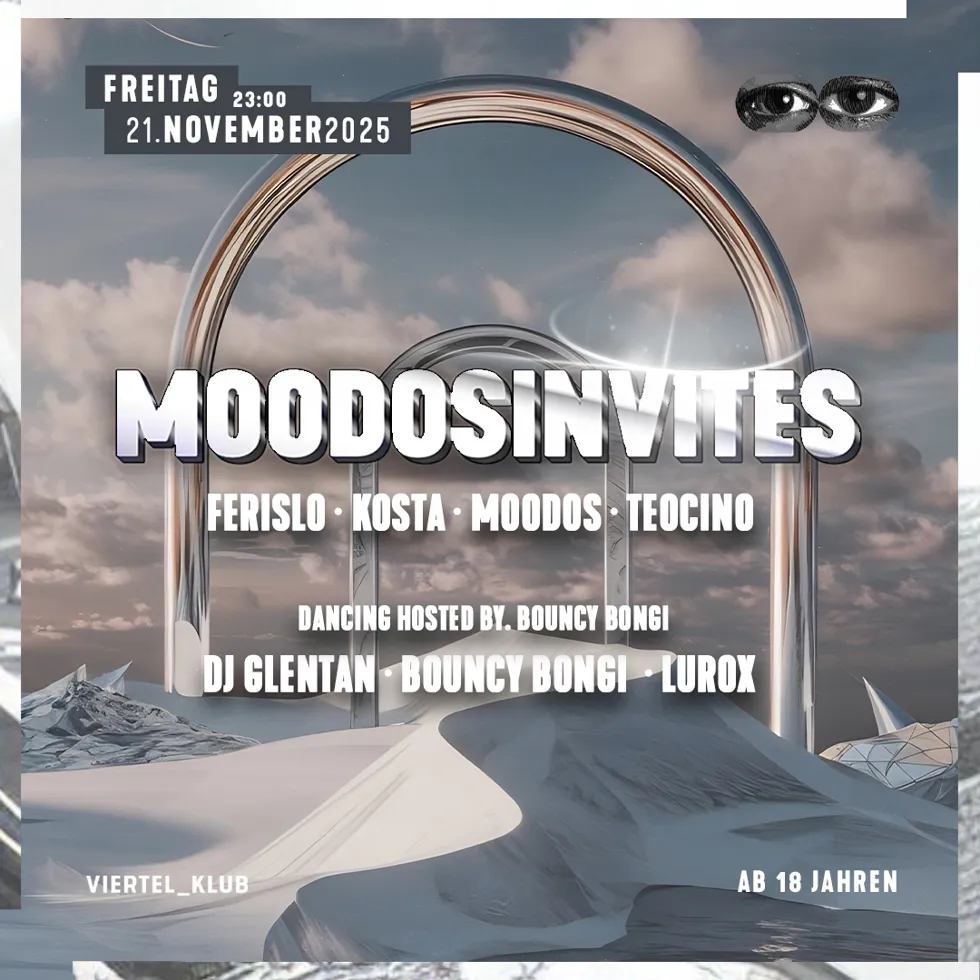 Das junge Basler DJ-Duo MOODOS, bestehend aus Avio und Leo Rustemi, verzückt seit geraumer Zeit mit seinen Sets das lokale Nachtleben. Mit ihrem eigenen Event "Moodosinvites" ginge sie den nächsten Schritt und blicken bereits auf zwei ausserordentlich erfolgreiche Episoden zurück. Nun schreiben die beiden das 3. Kapitel und wiederum laden sich die beiden Gastgeber, befreundete, lokale Artists ein und übernehmen gemeinsam die musikalische Gestaltung der Nacht. Und um dem bisherigen Erfolgsrezept treu zu bleiben, bleibt der Eintritt ab 18 Jahren.